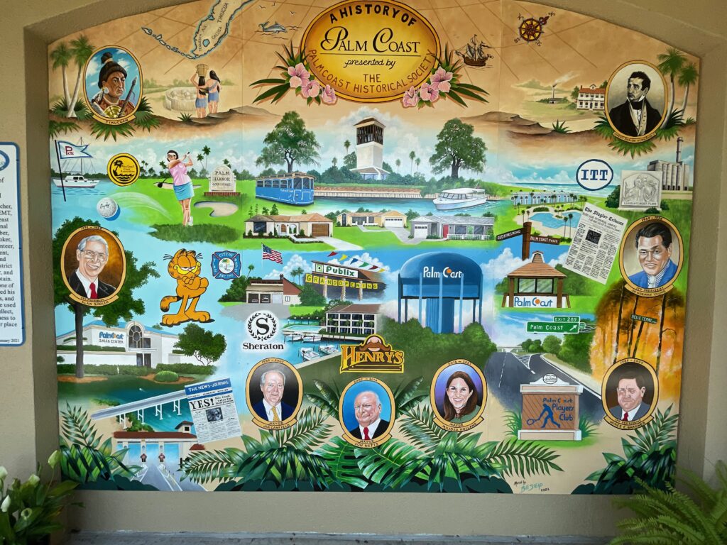 The museum building itself contributes to the visitor experience. A large exterior mural illustrates key moments in Palm Coast’s history, offering a visual introduction to the city’s development before visitors step inside.